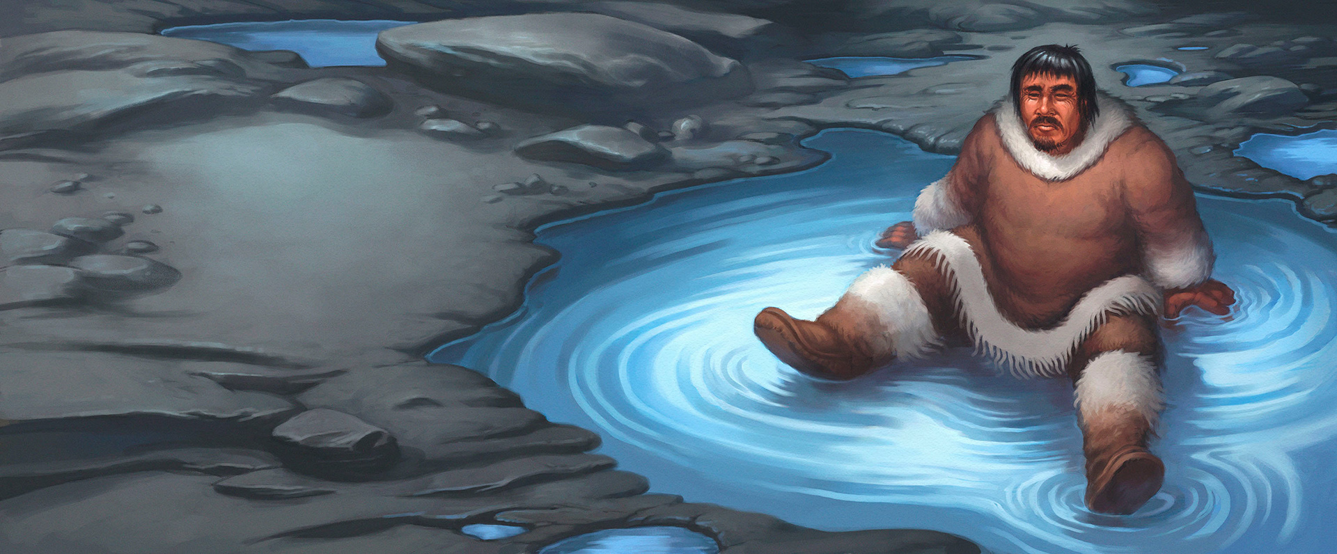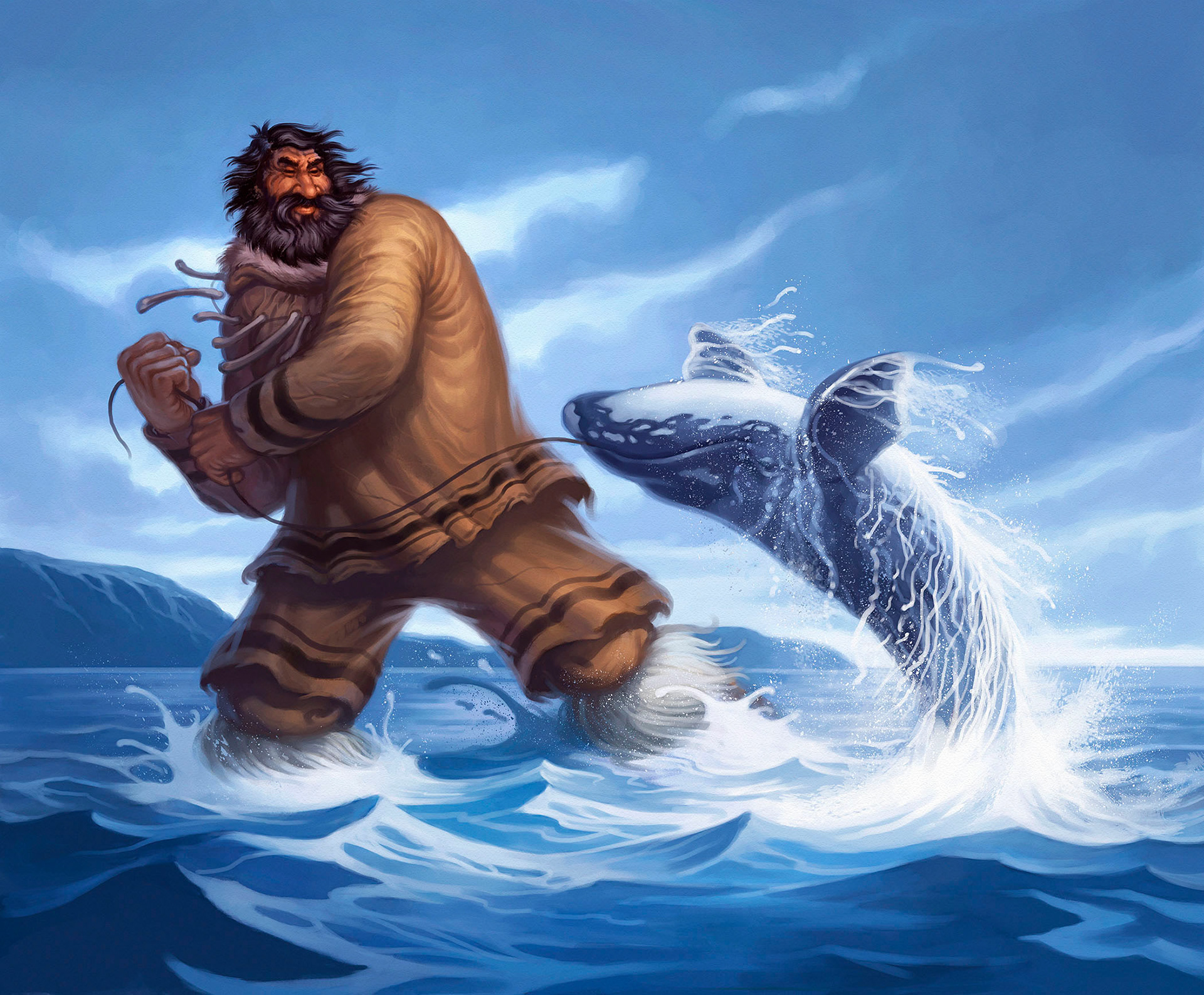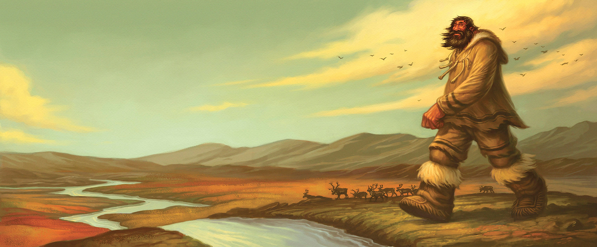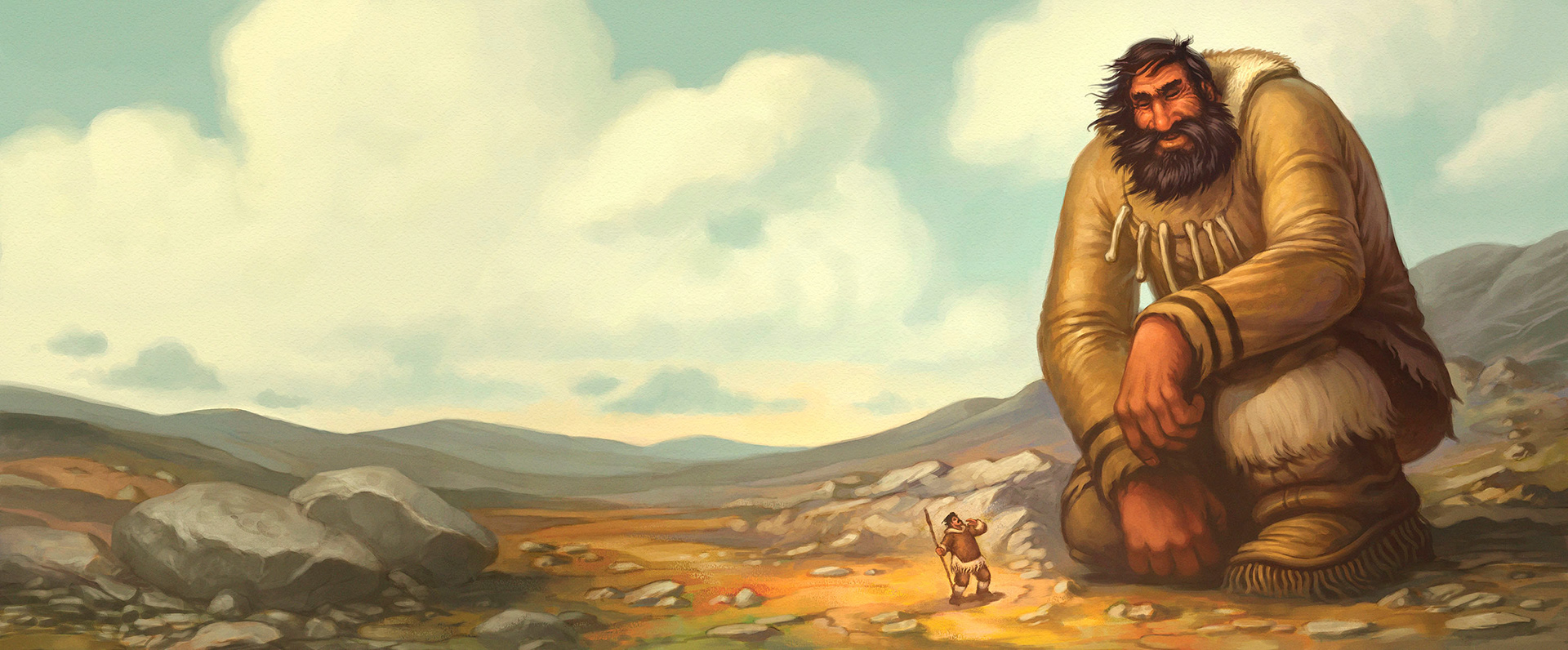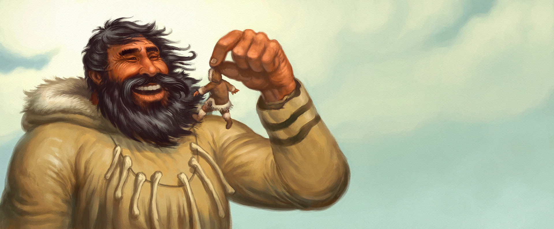 This is a series of illustrations for a picture book titled On the Shoulder of a Giant, written by Neil Christopher and based on a pan-Arctic Inuit traditional story. It tells the tale of a giant named Inukpak who adopts a human hunter. I've included the front and back cover illustrations along with a selection of interior spreads and a couple of vignettes that appeared in the back of the book.