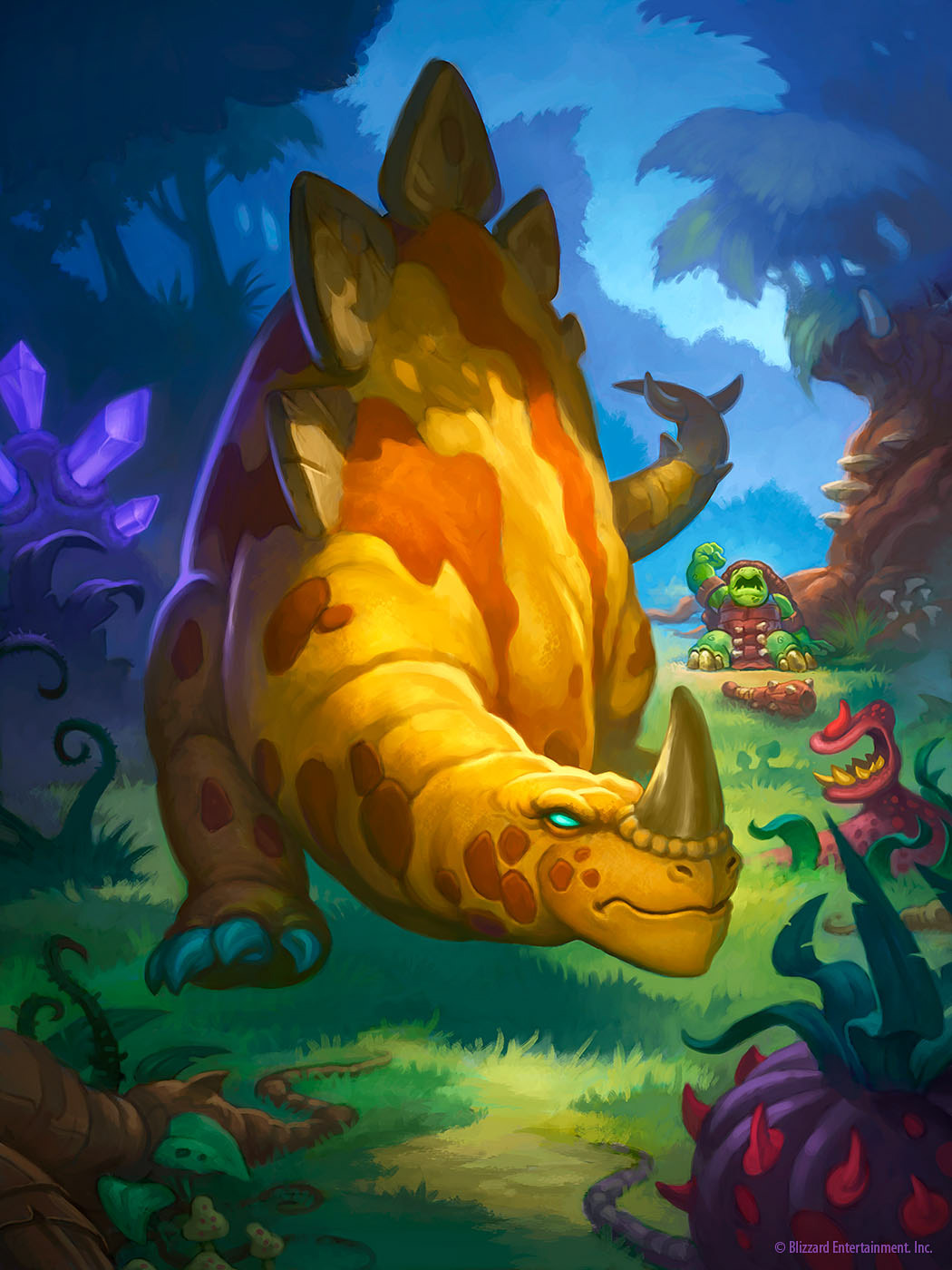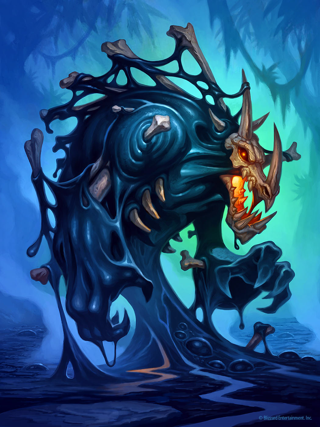 I designed and painted these illustrations for Journey to Un'Goro, an expansion for Blizzard Entertainment's popular Hearthstone game. The first two images are related and the last three depict increasingly menacing variations of a tar beast.