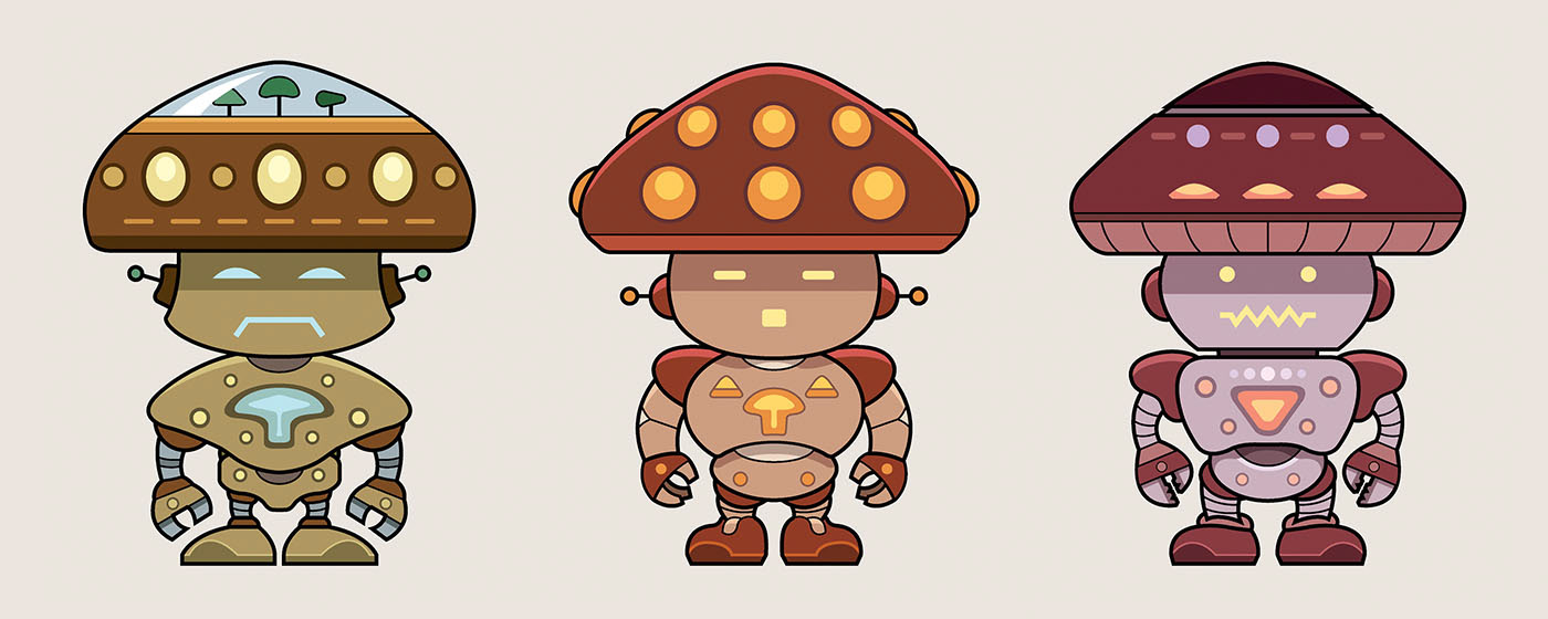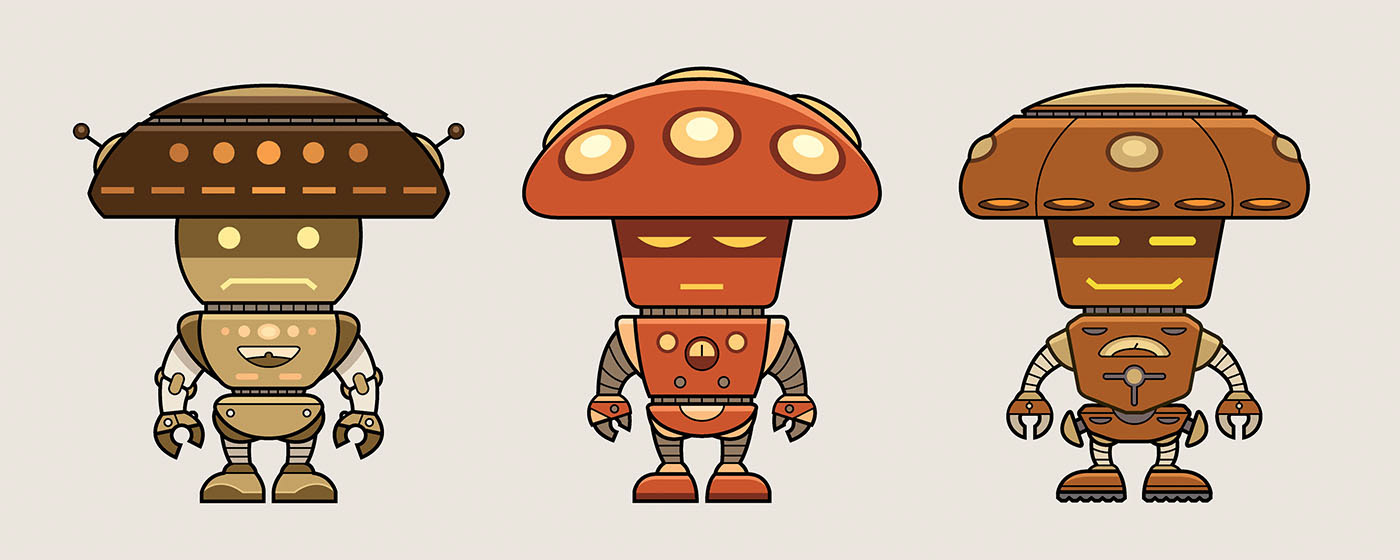 These little robots, created using Adobe Illustrator, are part of a larger robot project I began several years ago. The idea for them struck me out of the blue and they are presented here in the order they were created. The first two rows were designed within a week of each other. The third row was designed over a year later.