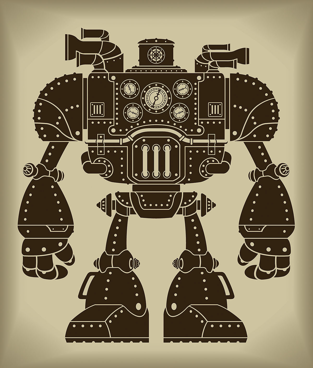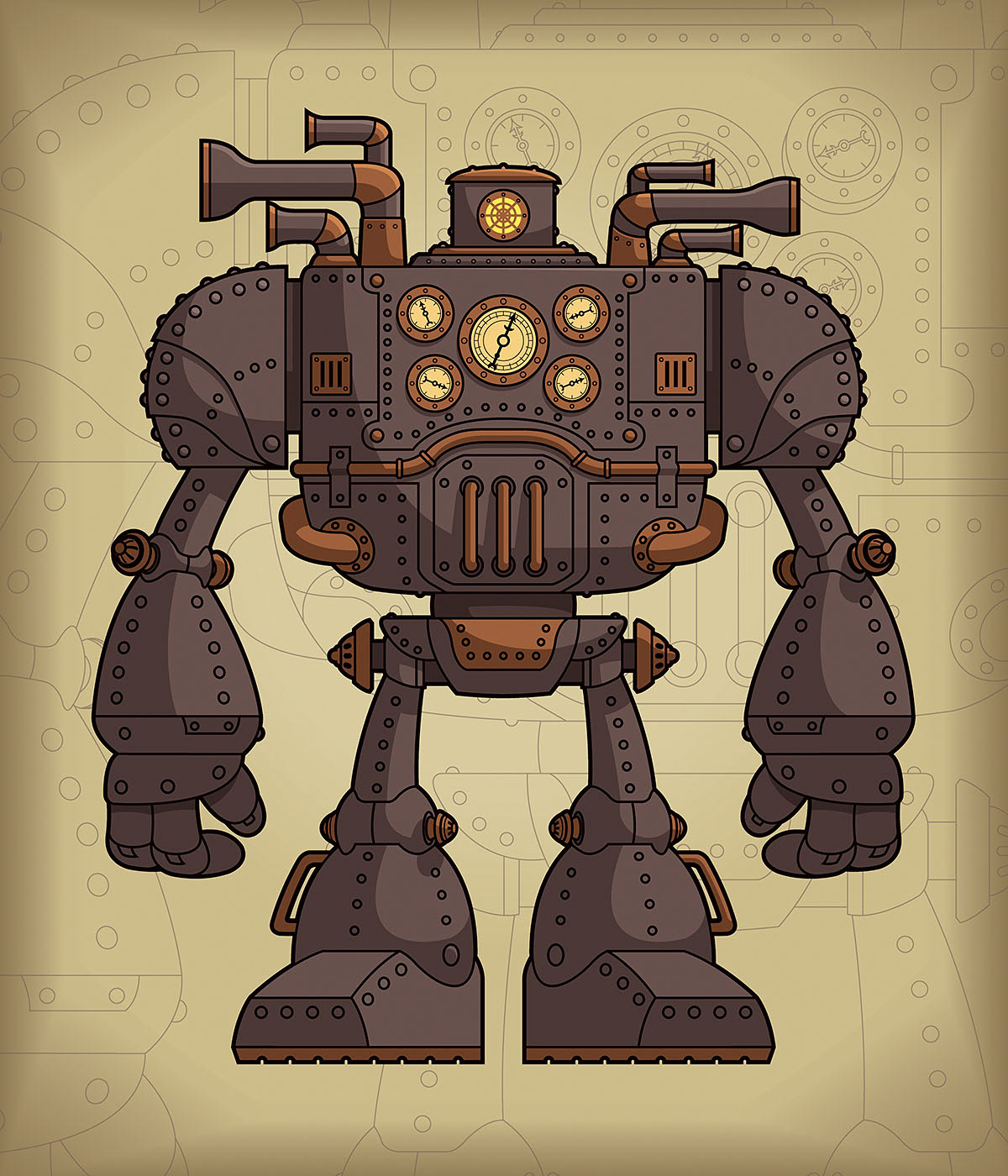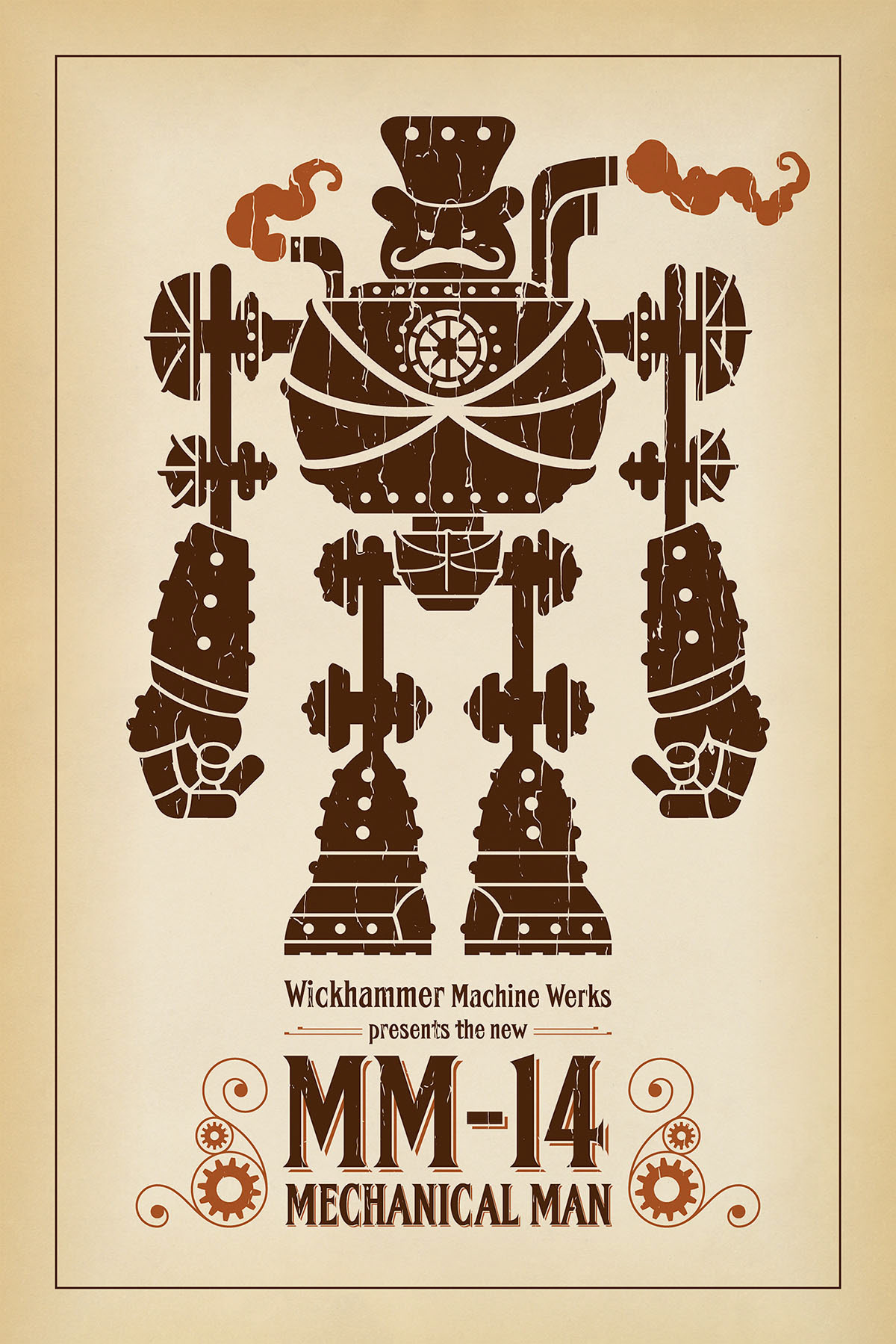 These Steampunk-inspired mechanical men are part of a larger series of robots I've designed.