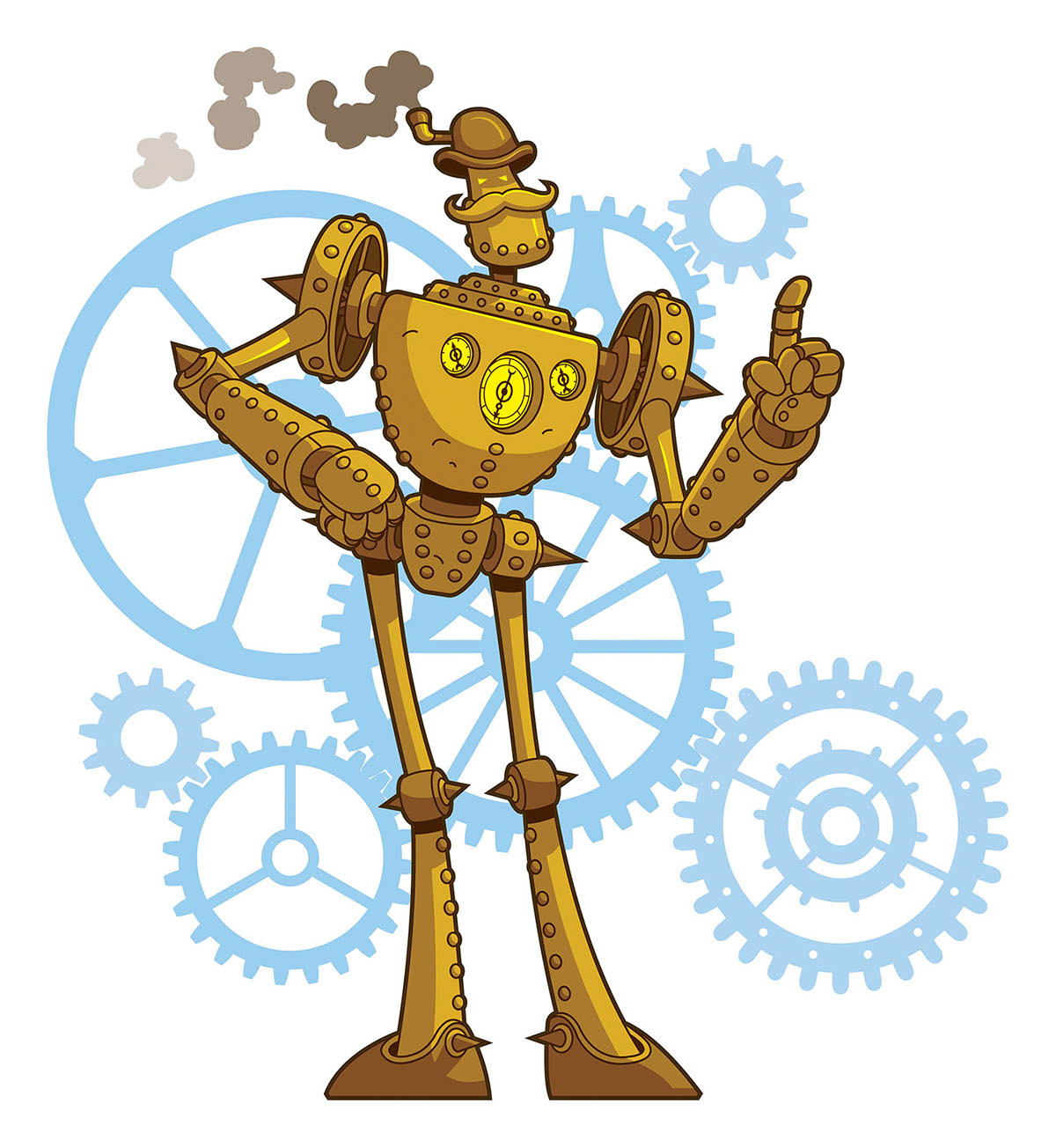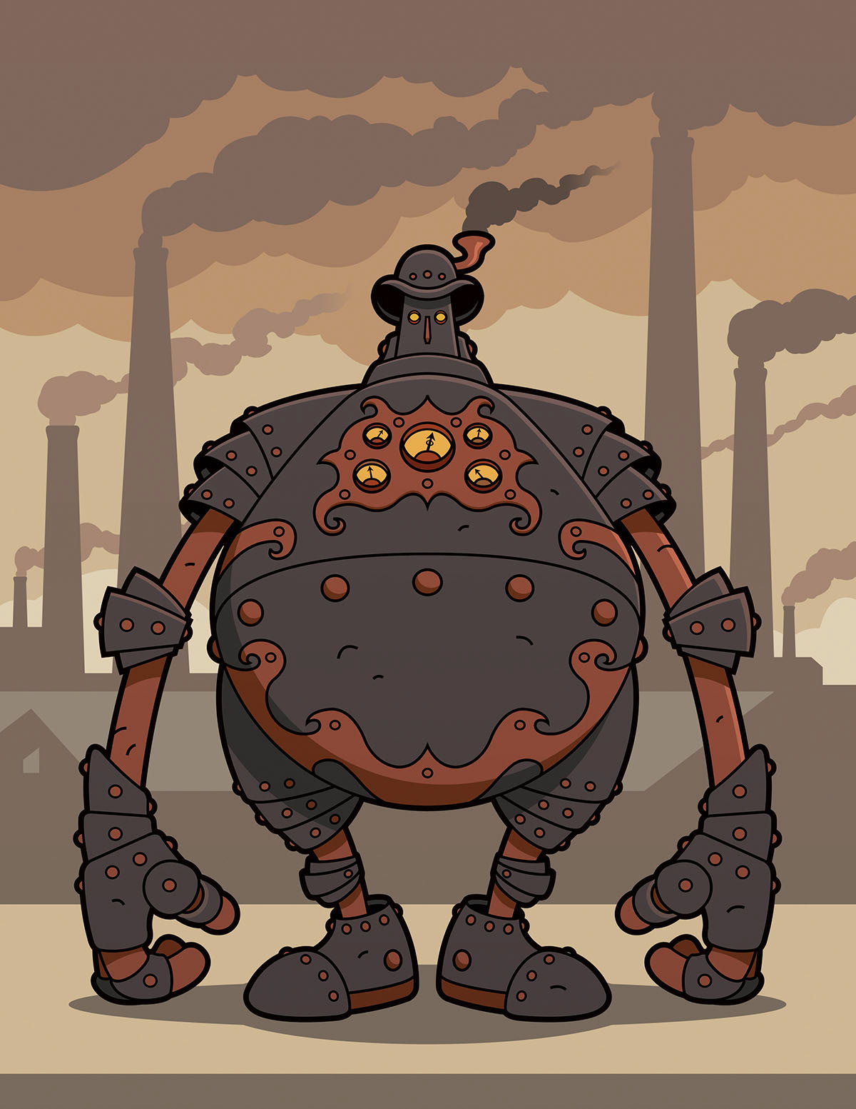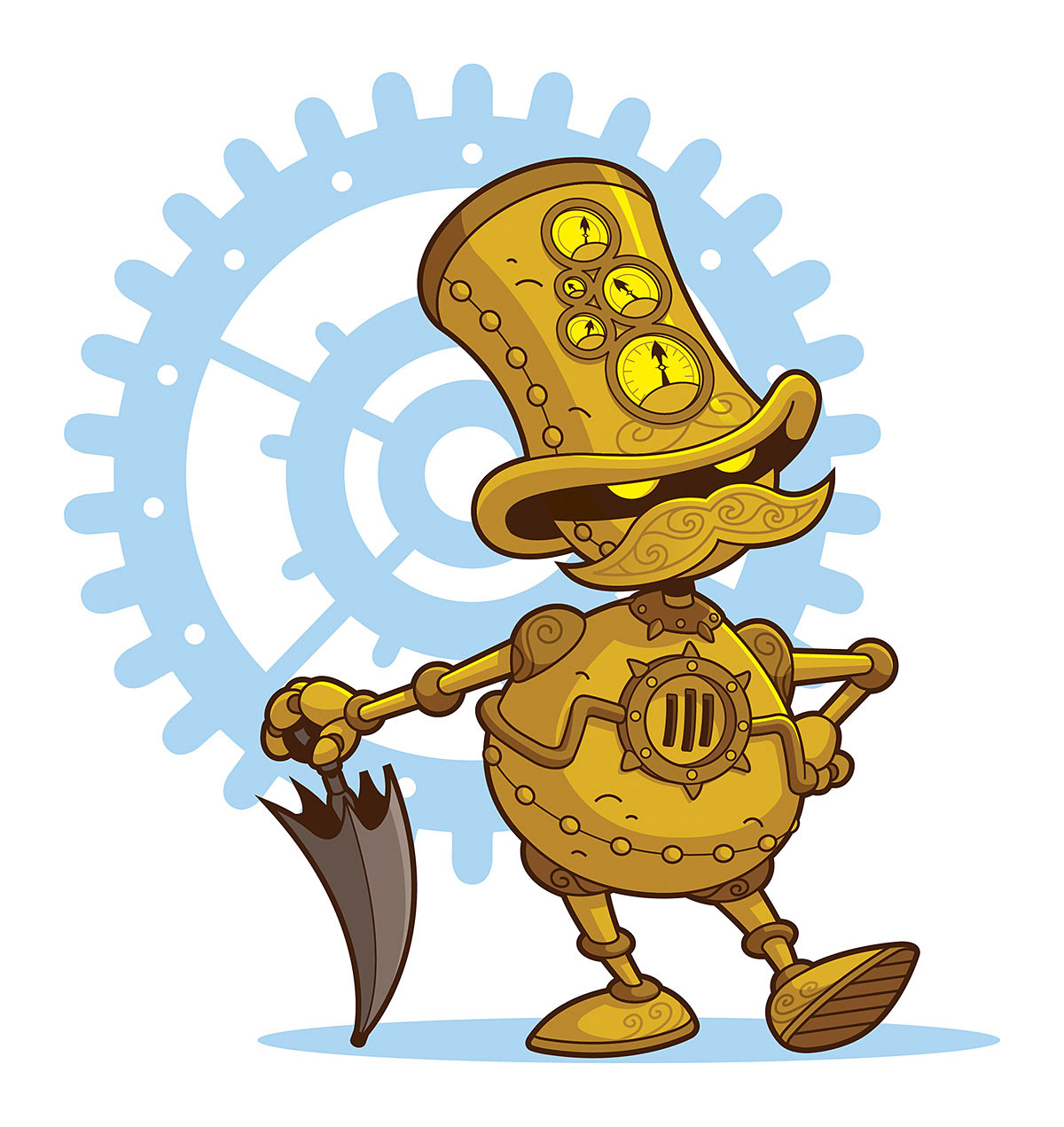 These Steampunk-inspired mechanical men are part of a larger series of robots I've designed.